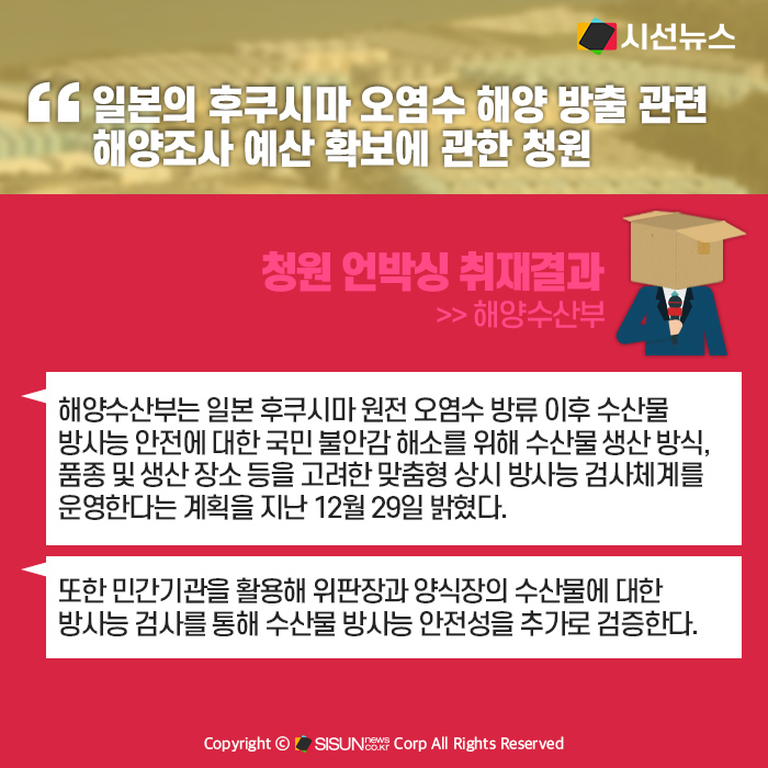 - 후쿠시마 오염수 관련 해양조사 예산 확보 요구