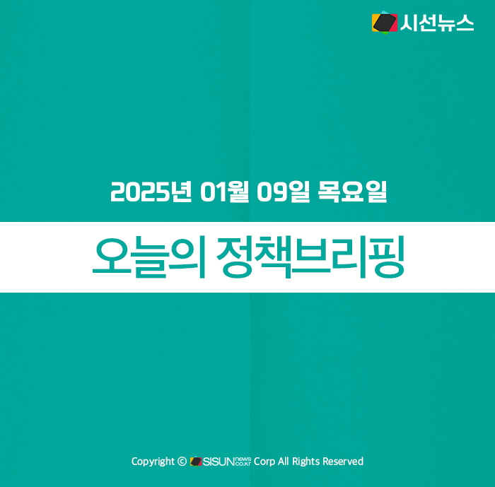 시선뉴스=양원민 기자 | 대한민국 정부 19개 부처에서는 추진하는 행정과 정책을 담은 보도 자료를 배포한다. 2025년 1월 9일 오늘의 정책브리핑을 소개합니다.