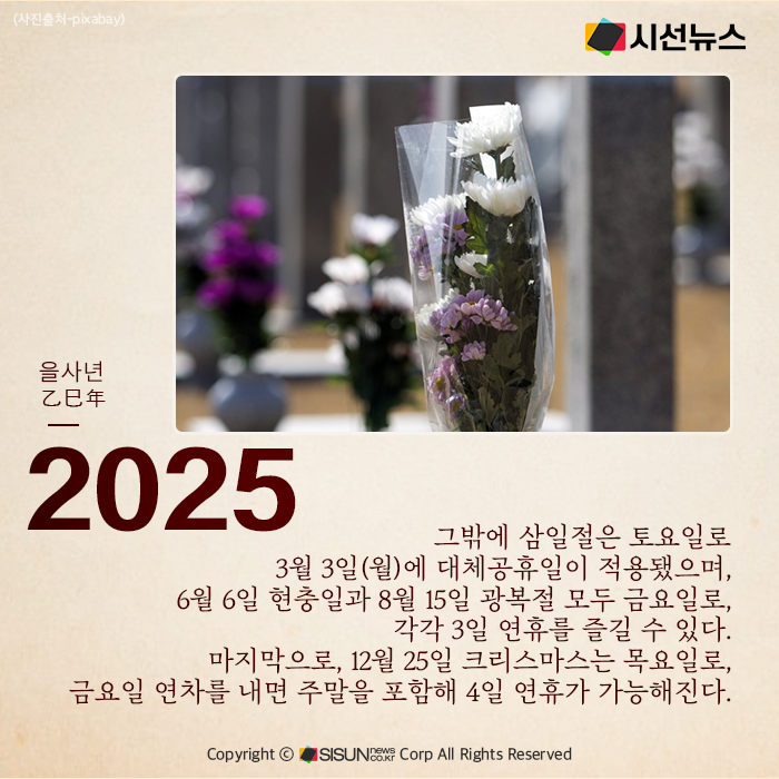 시선뉴스=심재민 기자 | 2025년 을사년(乙巳年), 많은 근로자를 설레게 하는 공휴일이 얼마나 될까?