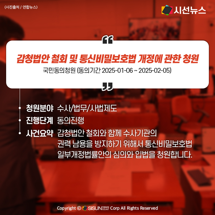 국민동의청원 (동의기간 2025-01-06 ~ 2025-02-05)