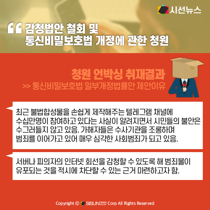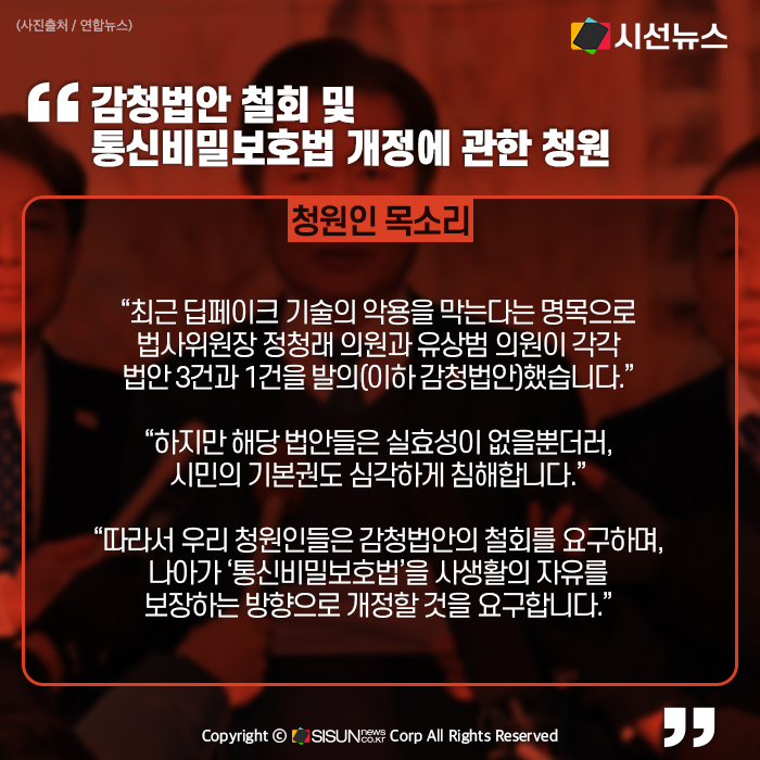 - 감청법안 철회 및 통신비밀보호법 개정 요구