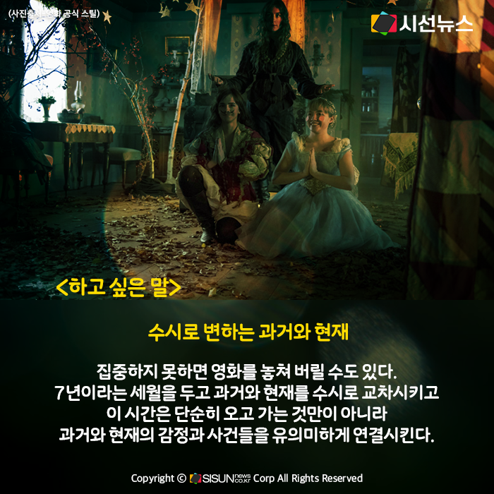 집중하지 못하면 영화를 놓쳐 버릴 수도 있다. 7년이라는 세월을 두고 과거와 현재를 수시로 교차시키고 이 시간은 단순히 오고 가는 것만이 아니라 과거와 현재의 감정과 사건들을 유의미하게 연결시킨다. 하지만 내용으로만 과거와 현재가 구분되는 것은 아니다. 필름의 색 자체가 다르다. 과거는 따뜻하게 하지만 현재는 차갑고 어두운 느낌이 든다. 아마도 주인공들의 마음이 투영됐을지도 모르겠다. 수시로 변하는 과거와 현재, 잠시 잊고 지낸 나의 과거가 문득 떠오르는 것이 이상하지 않을지도 모른다.