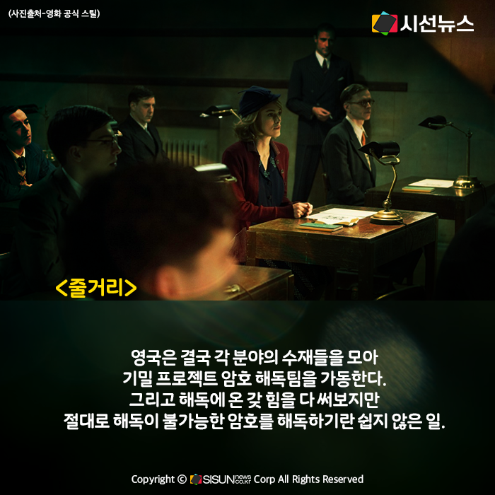 매 순간 3명이 죽는 사상 최악의 위기에 처한 제 2차 세계대전. 절대 해독이 불가능한 암호 ‘에니그마’로 인해 연합군은 속수무책으로 당하게 된다. 독일의 기세는 갈수록 커지고 유럽을 포함한 전 세계는 전쟁 속에서 헤어 나오지 못하고 있다. 영국은 결국 각 분야의 수재들을 모아 기밀 프로젝트 암호 해독팀을 가동한다. 그리고 해독에 온 갖 힘을 다 써보지만 절대로 해독이 불가능한 암호를 해독하기란 쉽지 않은 일.