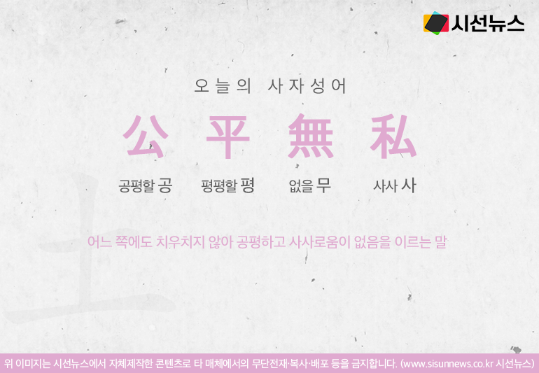오늘의 사자성어 공평무사[公平無私]입니다.