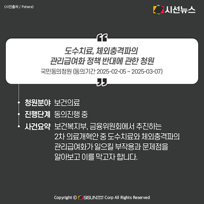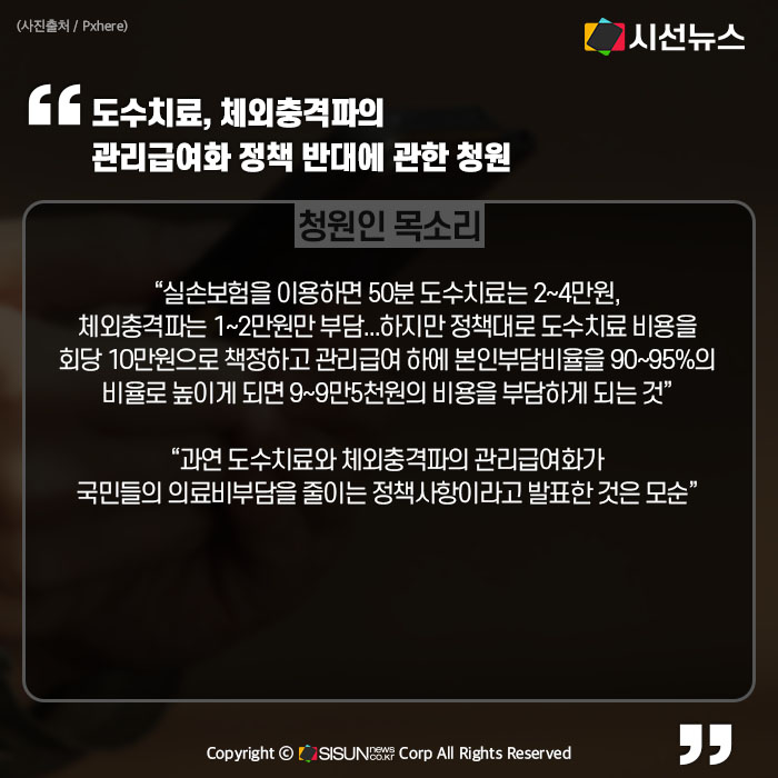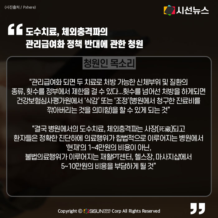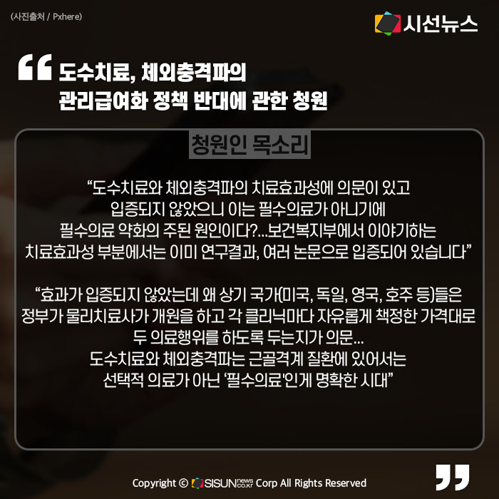 - 도수치료, 체외충격파의 관리급여화 정책 반대에 관한 청원