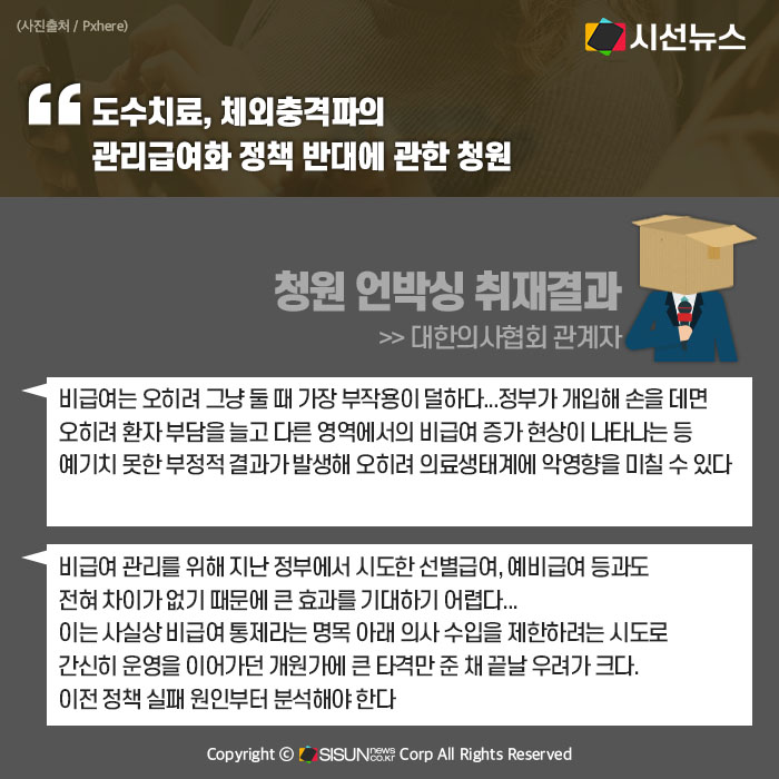 “비급여 관리를 위해 지난 정부에서 시도한 선별급여, 예비급여 등과도 전혀 차이가 없기 때문에 큰 효과를 기대하기 어렵다...이는 사실상 비급여 통제라는 명목 아래 의사 수입을 제한하려는 시도로 간신히 운영을 이어가던 개원가에 큰 타격만 준 채 끝날 우려가 크다. 이전 정책 실패 원인부터 분석해야 한다”