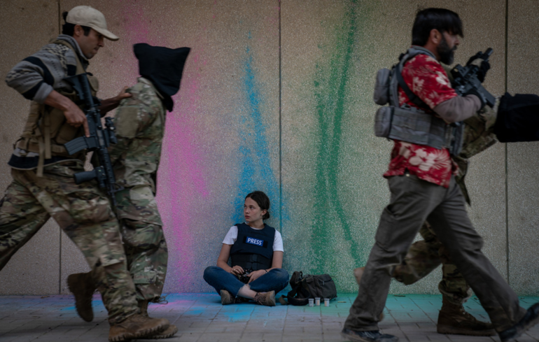 총을 무장한 군인들이 거리에 돌아다니고, 그 중 일부는 민간인을 학살하는데 거침 없다. 영화에서는 내란이 왜 일어났는지, 일어난 지 얼마나 됐는지 같은 설명은 없다. 단지 그 과정을 같이 따라갈 뿐. 그리고 기자들은 누구의 편도 아닌, 그 모습 자체를 그대로 보여줄 뿐이다. 어떠한 감정도 이입 해서는 안되고 누구의 편을 들어서도 안 된다. 무섭고 두렵지만 누군가는 해야 하고 또 알려야 하는 일이기에, 그들은 건조하기 짝이없는 감정으로 전쟁을 대한다. 처참함을 넘어선 두려움 속 상황. 사명감과 본능의 줄타기의 괴로움은 꽤 현실적이다.