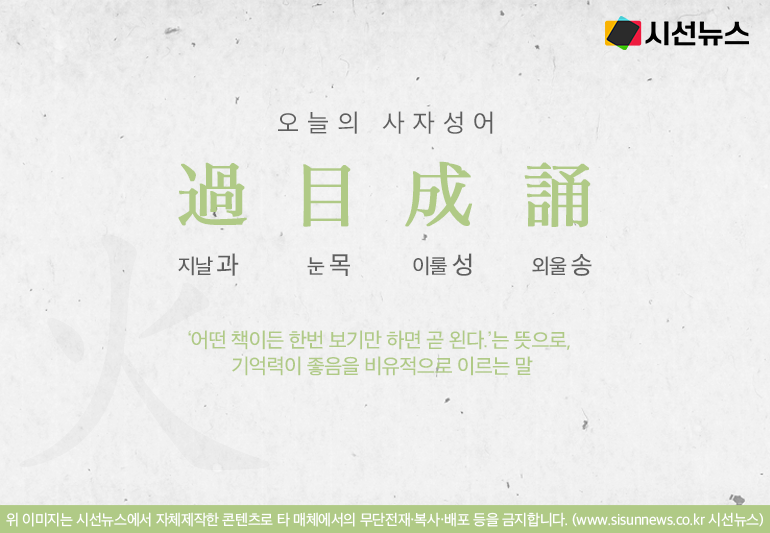 오늘의 사자성어 과목성송[過目成誦]입니다.