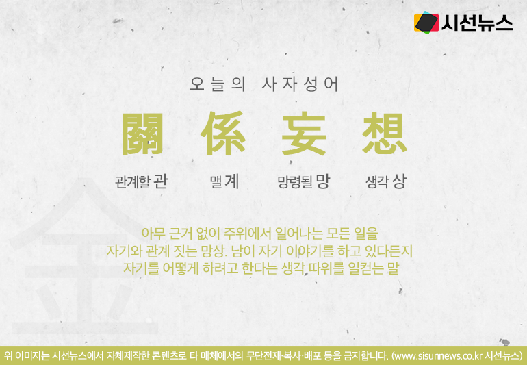 오늘의 사자성어 관계망상[關係妄想]입니다.