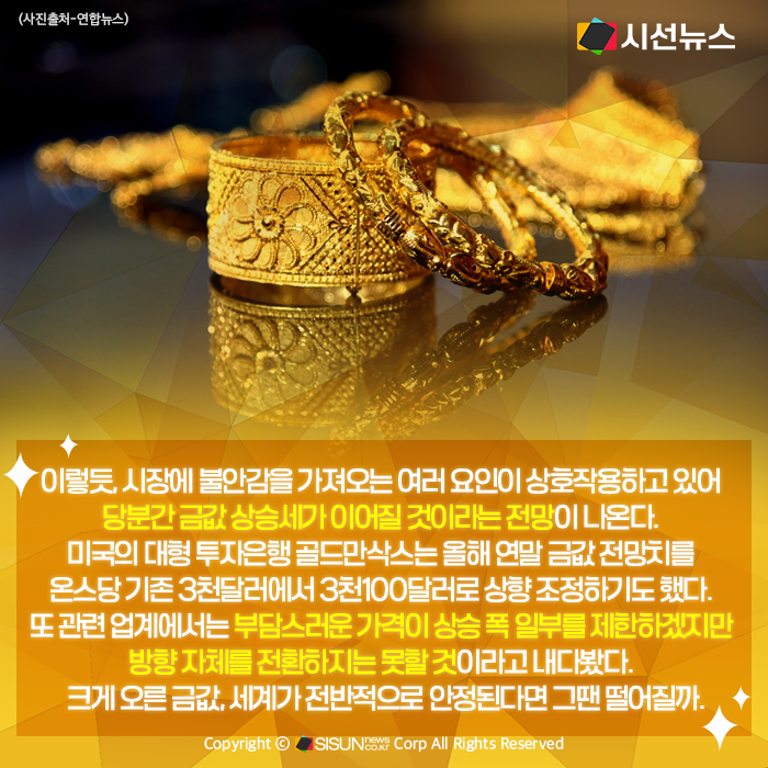 이렇듯, 시장에 불안감을 가져오는 여러 요인이 상호작용하고 있어 당분간 금값 상승세가 이어질 것이라는 전망이 나온다. 미국의 대형 투자은행 골드만삭스는 올해 연말 금값 전망치를 온스당 기존 3천달러에서 3천100달러로 상향 조정하기도 했다. 또 관련 업계에서는 부담스러운 가격이 상승 폭 일부를 제한하겠지만 방향 자체를 전환하지는 못할 것이라고 내다봤다. 한 번 크게 오른 금값, 세계가 전반적으로 안정된다면 그땐 떨어질까.