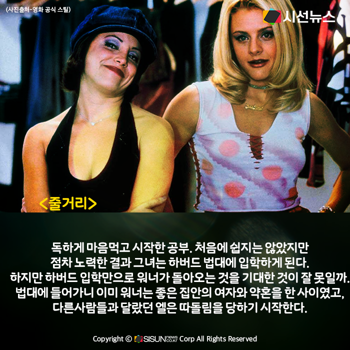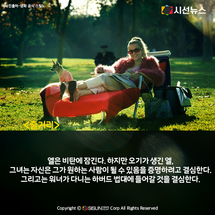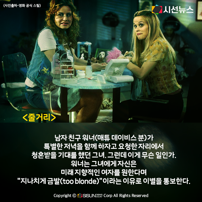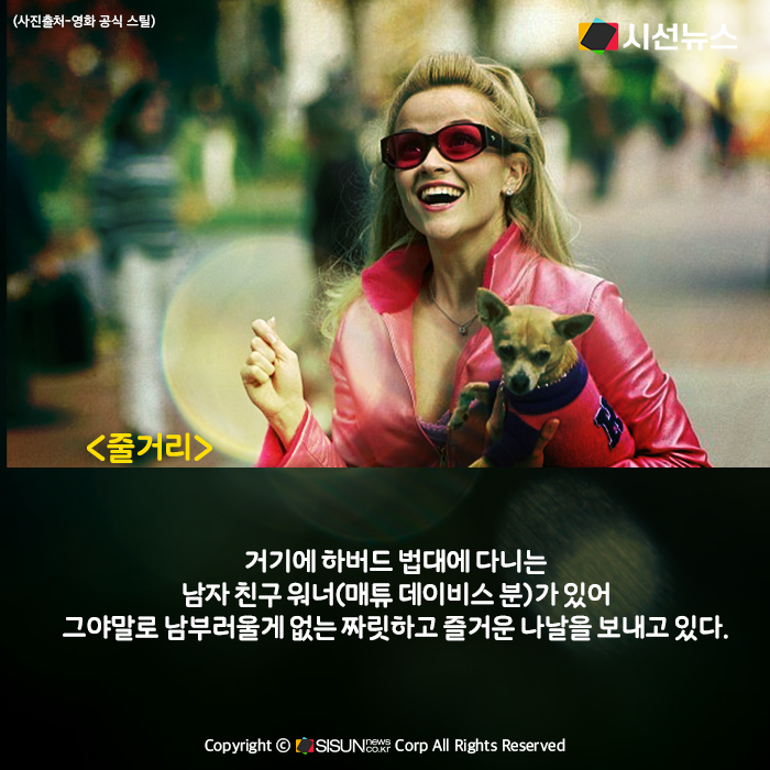 시선뉴스=박진아 기자ㅣ2001년 지구촌을 뜨겁게 달군 헐리우드 영화가 있었다. 바로 영화 <금발이 너무해>다. 이 영화는 지난 2001년 개봉해 전미 흥행 9천만불(1,100억)의 성적을 기록했으며 여전히 회자가 되고 있다. 바라만 봐도 사랑스러움이 느껴지는 리즈 위더스푼의 영화 <금발이 너무해>를 살펴본다.