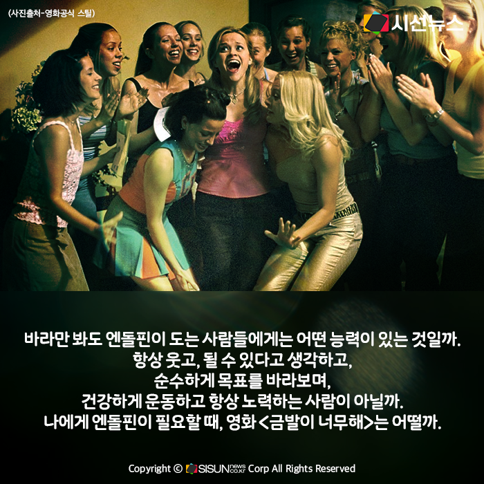 바라만 봐도 엔돌핀이 도는 사람들에게는 어떤 능력이 있는 것일까. 항상 웃고, 될 수 있다고 생각하고, 순수하게 목표를 바라보며, 건강하게 운동하고 항상 노력하는 사람이 아닐까. 나에게 엔돌핀이 필요할 때, 영화 <금발이 너무해>는 어떨까.