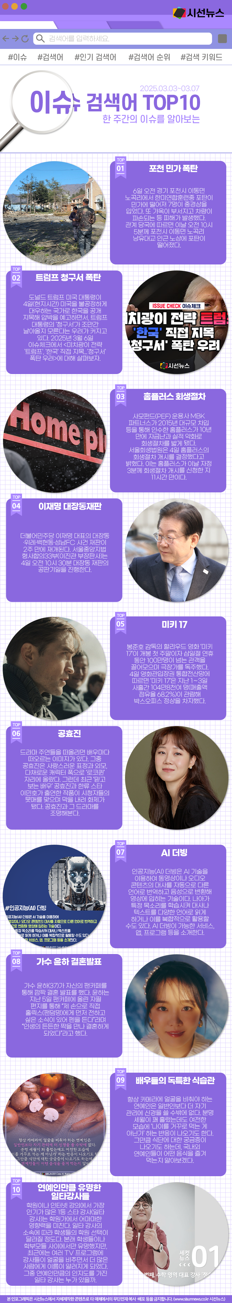 시선뉴스=박진아 기자 / 디자인=김선희 proㅣ지난주 한주간의 이슈 Top10입니다. 지난주에는 어떤 키워드들이 이슈가 되었을까요?