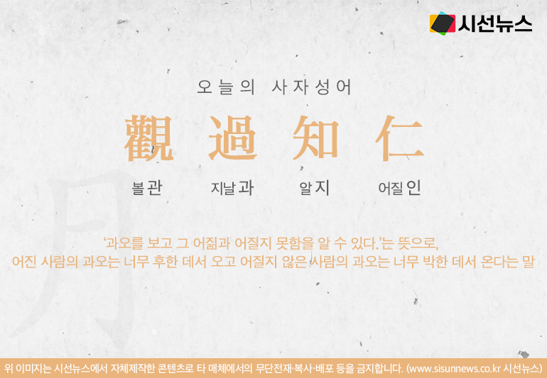 오늘의 사자성어 관과지인[觀過知仁]입니다.