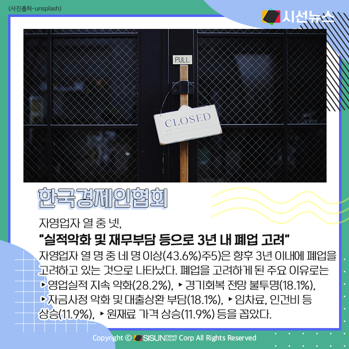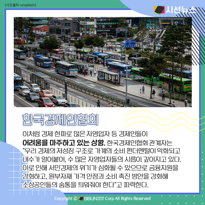 이처럼 경제 한파로 많은 자영업자 등 경제인들이 어려움을 마주하고 있는 상황. 한국경제인협회 관계자는 “우리 경제의 저성장 구조로 가계의 소비 펀더멘털이 악화되고 내수가 얼어붙어, 수 많은 자영업자들의 시름이 깊어지고 있다. 이로 인해 서민경제의 위기가 심화될 수 있으므로 금융지원을 강화하고, 원부자재 가격 안정과 소비 촉진 방안을 강화해 소상공인들의 숨통을 틔워줘야 한다”고 피력한다.