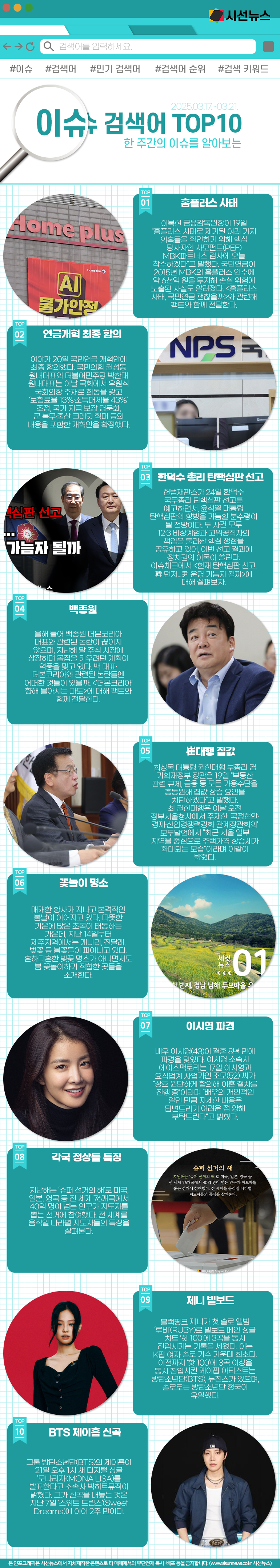 시선뉴스=박진아 기자 / 디자인=김선희 proㅣ지난주 한주간의 이슈 Top10입니다. 지난주에는 어떤 키워드들이 이슈가 되었을까요?