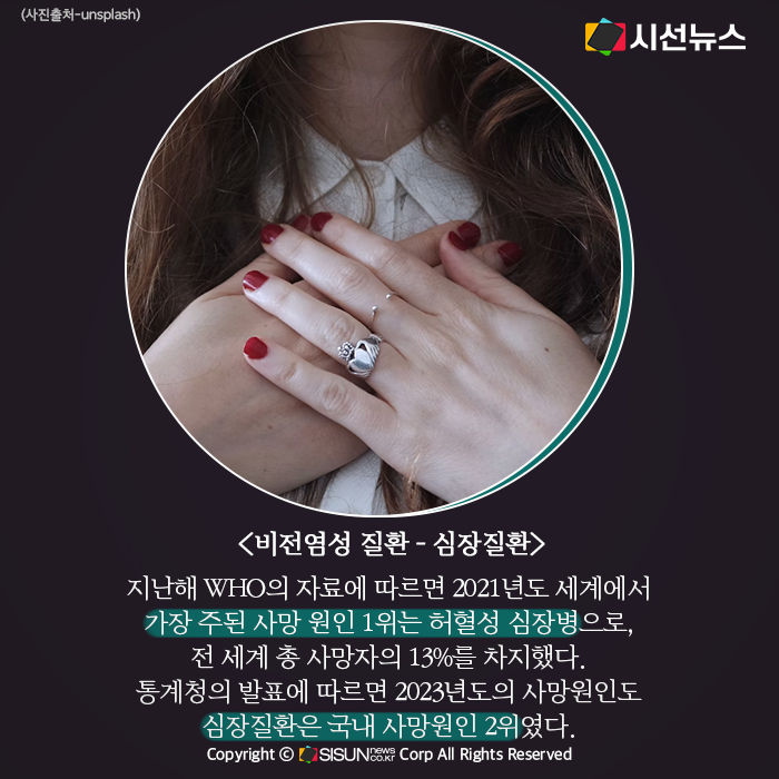 지난해 WHO의 자료에 따르면 2021년도 세계에서 가장 주된 사망 원인 1위는 허혈성 심장병으로, 전 세계 총 사망자의 13%를 차지했다. 통계청이 지난해 발표한 2023년도의 사망원인 통계 결과에도 심장질환은 국내 사망원인 2위였다.