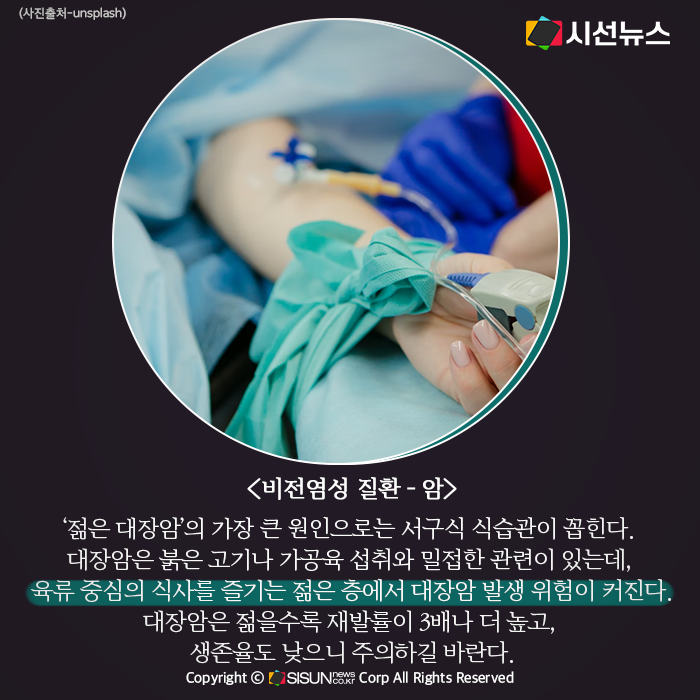 50대 미만의 나이에서 생기는 ‘젊은 대장암’이 증가하는 원인으로 서구식 식습관이 꼽힌다. 대장암은 붉은 고기나 가공육 섭취와 밀접한 관련이 있는데, 이런 육류 중심의 식사를 즐기는 젊은 층에서 대장암 발생 위험이 커질 수밖에 없다. 대장암은 젊을수록 재발률이 3배나 더 높고, 생존율도 낮으니 주의하길 바란다.