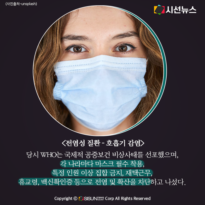 당시 WHO는 국제적 공중보건 비상사태를 선포했으며, 각 나라마다 마스크 필수 착용, 특정 인원 이상 집합 금지, 재택근무, 휴교령, 백신확인증 등으로 전염 및 확산을 차단하고 나섰다.