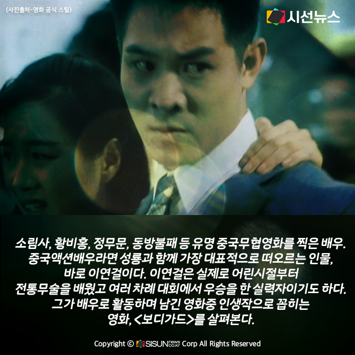 정무문, 동방불패 등 유명 중국무협영화를 찍은 배우. 중국액션배우라면 성룡과 함께 가장 대표적으로 떠오르는 인물, 바로 이연걸이다. 이연걸은 실제로 어린시절부터 전통무술을 배웠고 여러 차례 대회에서 우승을 한 실력자이기도 하다. 그가 배우로 활동하며 남긴 영화중 인생작으로 꼽히는 영화, <보디가드>를 살펴본다.