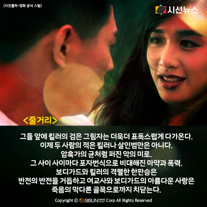 그들 앞에 킬러의 검은 그림자는 더욱더 표독스럽게 다가온다. 이제 두 사람의 적은 킬러나 살인범만은 아니다. 암흑가의 균처럼 퍼진 악의 미로. 그 사이 사이마다 포자번식으로 비대해진 마약과 폭력. 보디가드와 킬러의 격렬한 한판승은 반전의 반전을 거듭하고 여교사와 보디가드의 아름다운 사랑은 죽음의 막다른 골목으로까지 치닫는다.