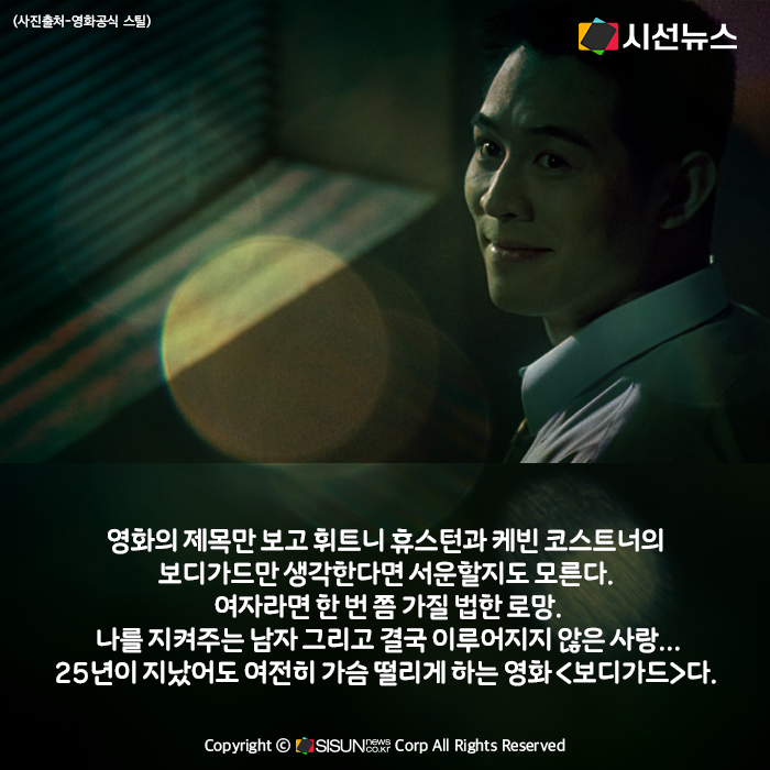 영화의 제목만 보고 휘트니 휴스턴과 케빈 코스트너의 보디가드만 생각한다면 서운할지도 모른다. 여자라면 한 번 쯤 가질 법한 로망. 나를 지켜주는 남자 그리고 결국 이루어지지 않은 사랑... 25년이 지났어도 여전히 가슴 떨리게 하는 영화 <보디가드>다.