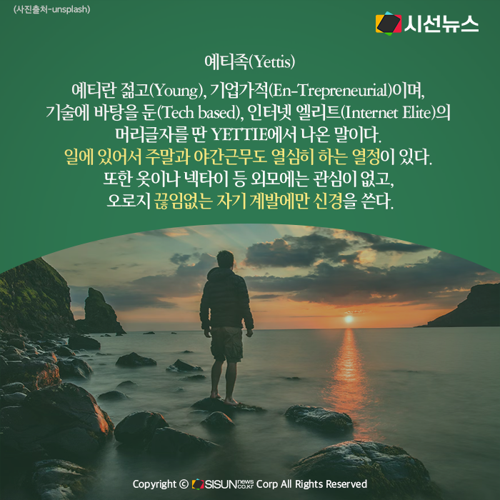예티란 젊고(Young), 기업가적(En-Trepreneurial)이며, 기술에 바탕을 둔(Tech based), 인터넷 엘리트(Internet Elite)의 머리글자를 딴 YETTIE에서 나온 말이다. 여유롭게 삶을 즐기는 여피족과는 달리 일에 있어서는 주말과 야간근무도 열심히 하는 열정이 있다. 또한 옷이나 넥타이 등 외모에는 관심이 없고, 오로지 자신을 하나의 상품으로 팔기 위한 끊임없는 자기 계발에만 신경을 쓴다.