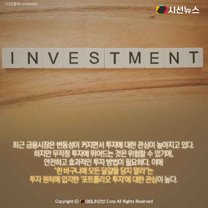 시선뉴스=심재민 기자 | 최근 금융시장은 변동성이 커지면서 투자에 대한 관심이 높아지고 있다. 하지만 무작정 투자에 뛰어드는 것은 위험할 수 있기에, 안전하고 효과적인 투자 방법이 필요하다. 이에 "한 바구니에 모든 달걀을 담지 말라"는 투자 원칙에 입각한 ‘포트폴리오 투자’에 대한 관심이 높다.