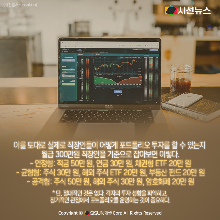 이를 토대로 실제로 직장인들이 어떻게 포트폴리오 투자를 할 수 있는지 월급 300만원 직장인을 기준으로 잡아보면 이렇다.