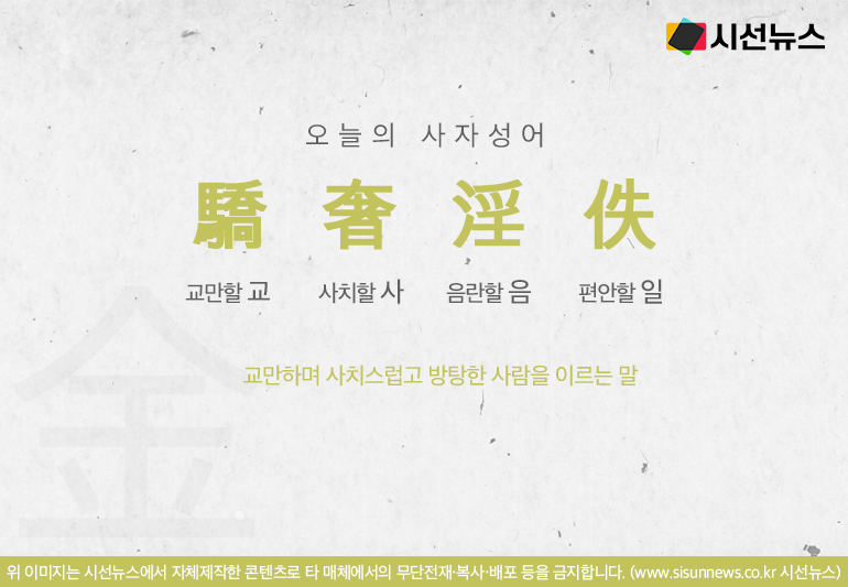 오늘의 사자성어 교사음일[驕奢淫佚]입니다.