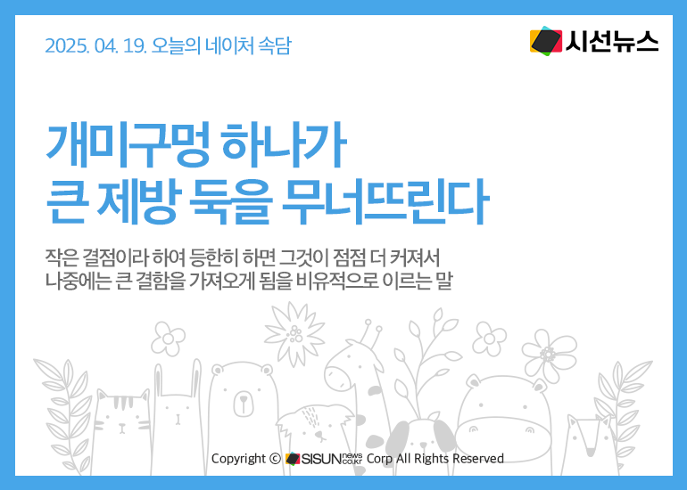 오늘의 네이처 속담은 <개미구멍 하나가 큰 제방 둑을 무너뜨린다>입니다.