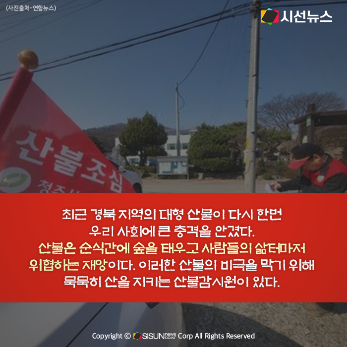 시선뉴스=심재민 기자 | 최근 경북 지역의 대형 산불이 다시 한번 우리 사회에 큰 충격을 안겼다. 산불은 순식간에 숲을 태우고 사람들의 삶터마저 위협하는 재앙이다. 이러한 산불의 비극을 막기 위해 묵묵히 산을 지키는 산불감시원이 있다.