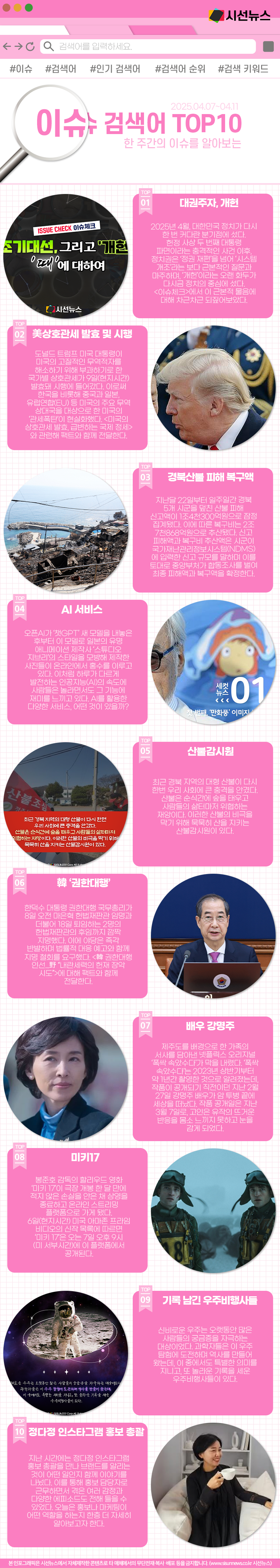 시선뉴스=박진아 기자 / 디자인=김선희 proㅣ지난주 한주간의 이슈 Top10입니다. 지난주에는 어떤 키워드들이 이슈가 되었을까요?