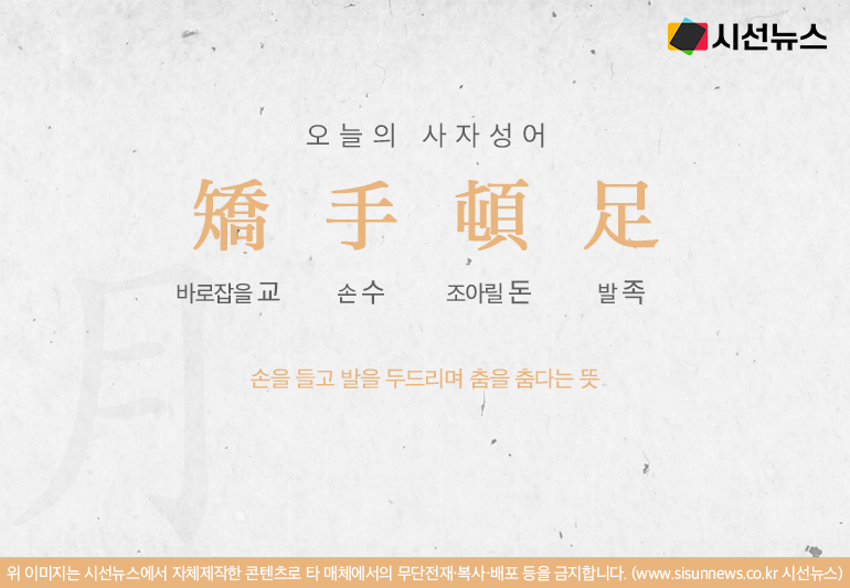 오늘의 사자성어 교수돈족[矯手頓足]입니다.