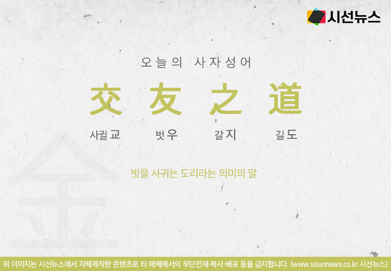 오늘의 사자성어 교우지도[交友之道]입니다.