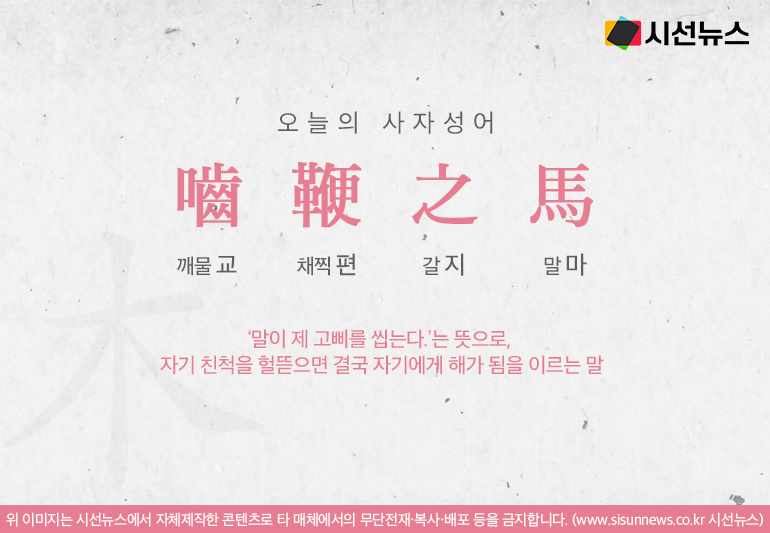 오늘의 사자성어 교편지마[嚙鞭之馬]입니다.