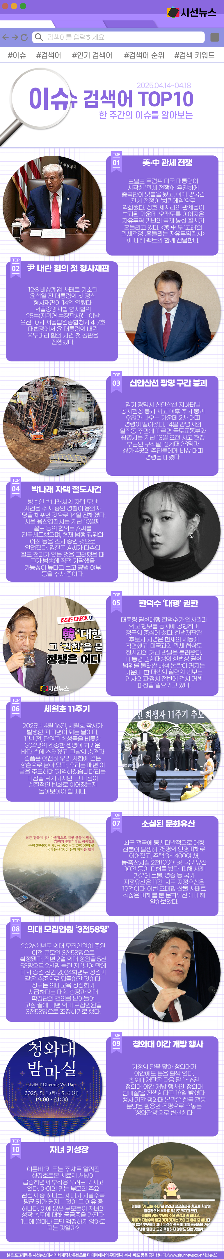 시선뉴스=박진아 기자 / 디자인=김선희 proㅣ지난주 한주간의 이슈 Top10입니다. 지난주에는 어떤 키워드들이 이슈가 되었을까요?