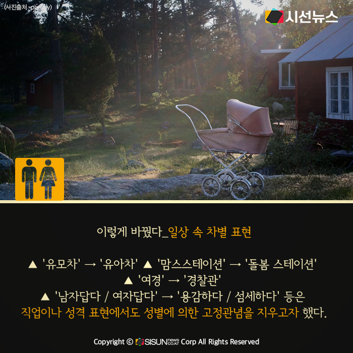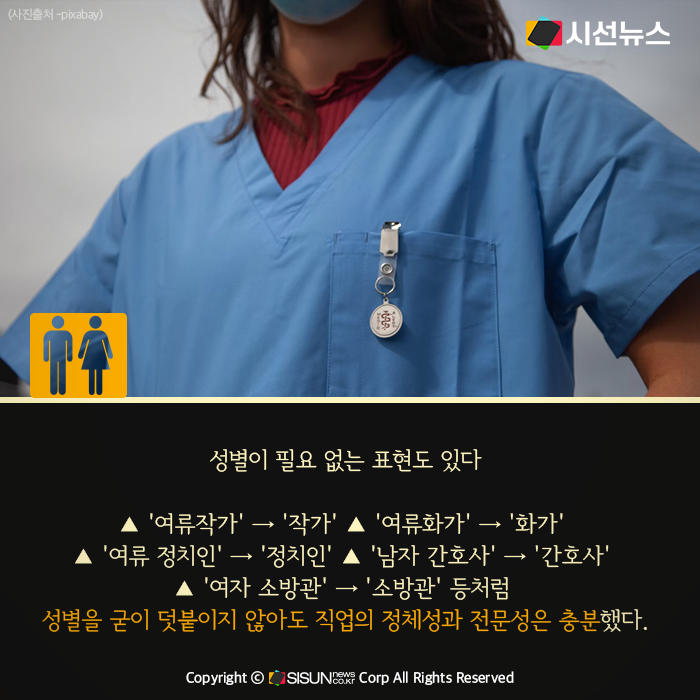 또한 직업에 성별을 덧붙이는 표현은 모두 제거됐다. ‘여류작가’, ‘여류화가’, ‘여류 정치인’ 등은 각각 ‘작가’, ‘화가’, ‘정치인’으로 표현하고, ‘여자 소방관’도 ‘소방관’으로 명확히 정리했다. 서울시는 성별을 굳이 명시하지 않아도 직업의 정체성과 전문성은 유지된다고 설명했다.