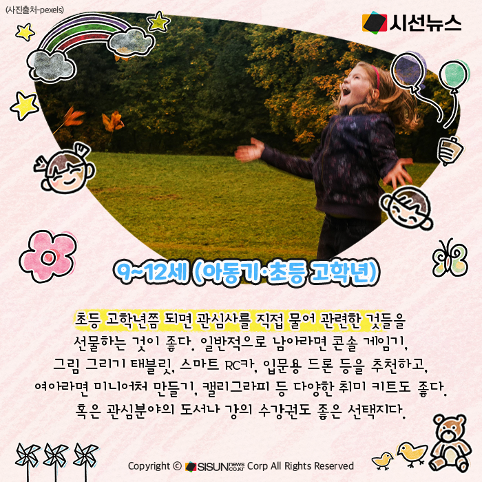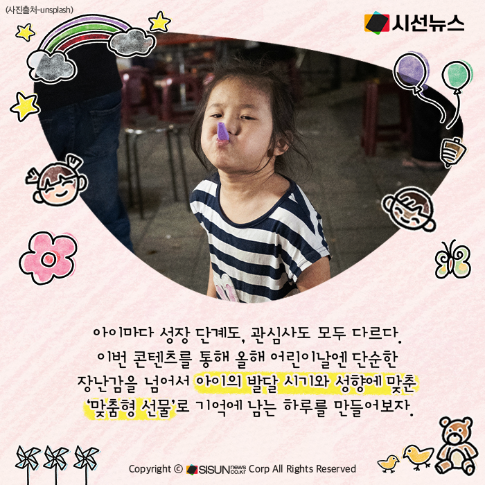 시선뉴스=양원민 기자 / 디자인=김선희 proㅣ아이마다 성장 단계도, 관심사도 모두 다르다. 이번 콘텐츠를 통해 올해 어린이날엔 단순한 장난감을 넘어서 아이의 발달 시기와 성향에 맞춘 ‘맞춤형 선물’로 기억에 남는 하루를 만들어보자.