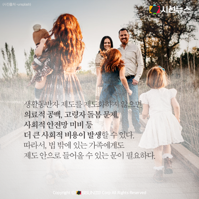 가족의 형태는 시대에 따라 변화한다. 하지만 우리의 법과 제도는 여전히 과거에 머물러 있다. 생활동반자는 단지 성소수자만의 이슈가 아니라, 초고령사회, 1인 가구 시대에 누구나 직면할 수 있는 현실이다. 생활동반자 제도를 제도화하지 않으면 의료적 공백, 고령자 돌봄 문제, 사회적 안전망 미비 등 더 큰 사회적 비용이 발생할 수 있다.