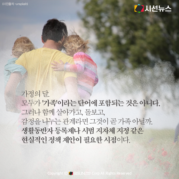 시선뉴스=심재민 기자 | 5월은 가정의 달이다. 어린이날, 어버이날, 부부의 날 등 가족을 중심으로 한 기념일들이 이어진다. 하지만 이 '가족'이라는 말이, 누군가에게는 제도적으로 보장되지 않는 관계일 수 있다는 사실은 잘 알려지지 않았다. 바로 그중 하나가 ‘생활동반자’ 가족이다.