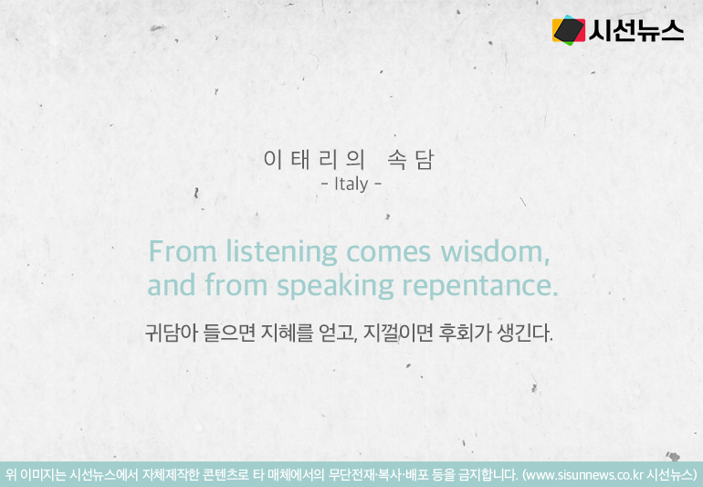 ‘귀담아 들으면 지혜를 얻고, 지껄이면 후회가 생긴다.’ <이태리 속담>