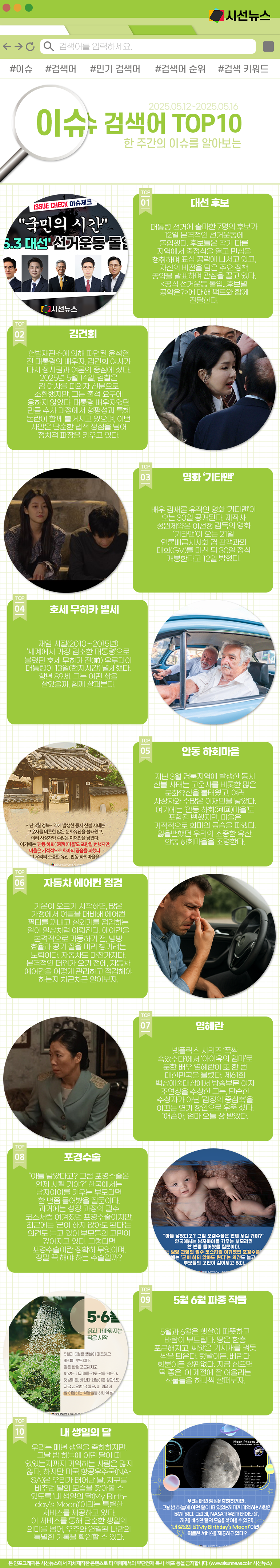 시선뉴스=박진아 기자 / 디자인=김선희 proㅣ지난주 한주간의 이슈 Top10입니다. 지난주에는 어떤 키워드들이 이슈가 되었을까요?