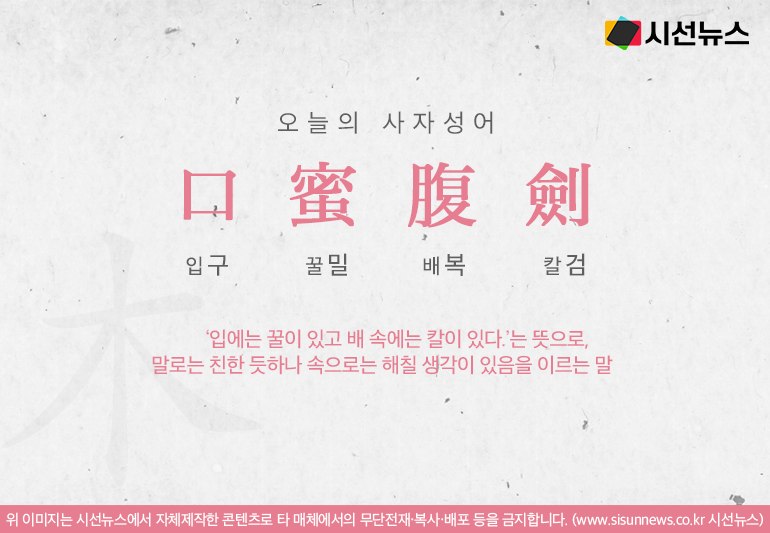 오늘의 사자성어 구밀복검[口蜜腹劍]입니다.
