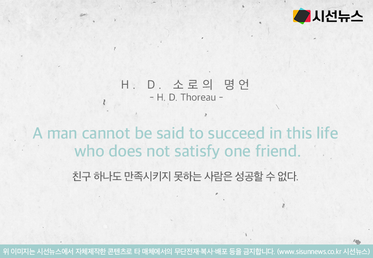 ‘친구 하나도 만족시키지 못하는 사람은 성공할 수 없다.’ <H. D. 소로>