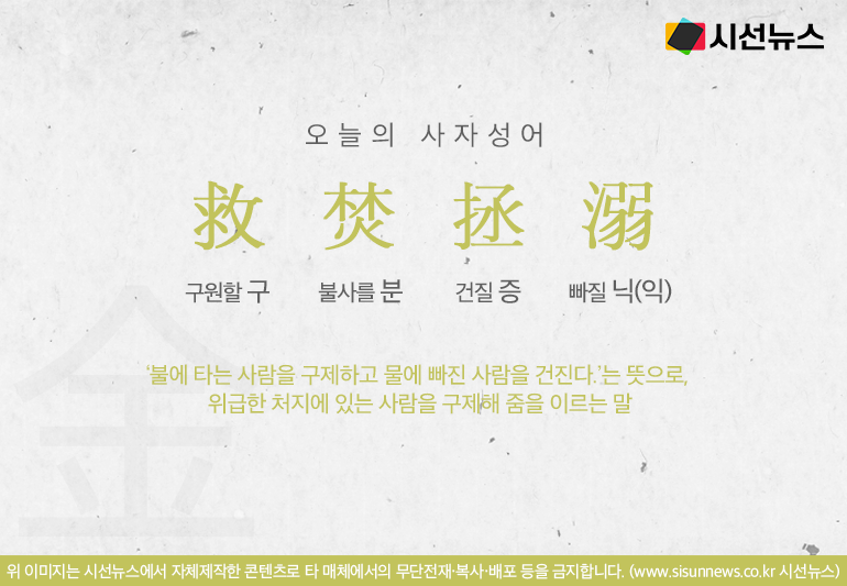 오늘의 사자성어 구분증닉[救焚拯溺]입니다.