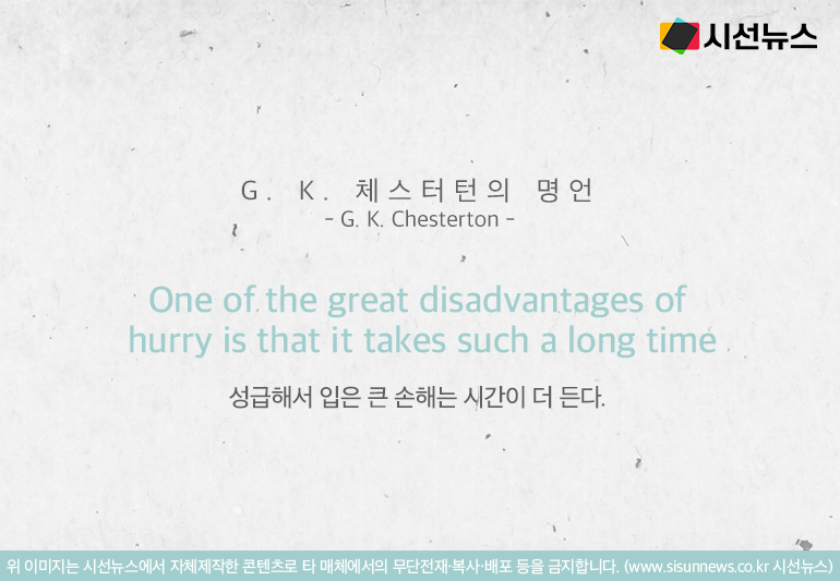 ‘성급해서 입은 큰 손해는 시간이 더 든다.’ <G. K. 체스터턴>