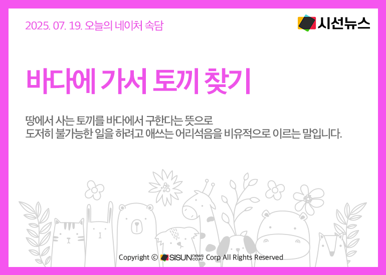 오늘의 네이처 속담은 <바다에 가서 토끼 찾기>입니다.