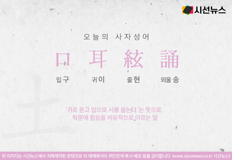 오늘의 사자성어 구이현송[口耳絃誦]입니다.