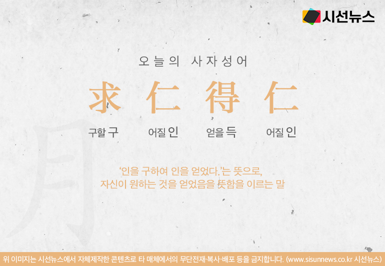 오늘의 사자성어 구인득인[求仁得仁]입니다.